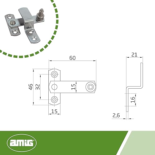 Amig - Bretella in stile rustico | Persiane lisce in acciaio | Ideale per interni ed esterni | 60x46 mm, Cromo opaco, Acciaio