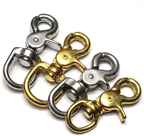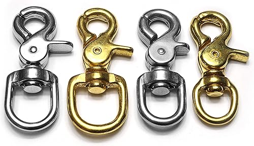 Set di 4 moschettoni a forbice, con giunto girevole, per guinzagli per cani, in lega di acciaio – 65 mm di lunghezza, anche per Paracord 550, portachiavi in ottone (effetto oro)