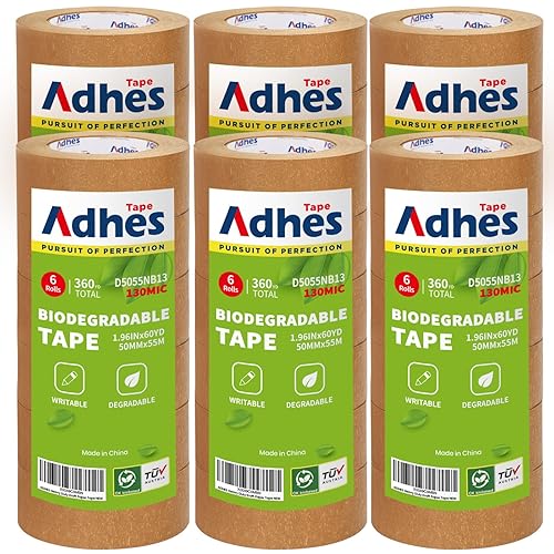 ADHES Kraftpapier-Band, 2 Inch x 60 Yards x 18 Rollen, biologisch abbaubares Papier-Verpackungsband beschreibbar, unbeschichtetes braunes Verschiffenband für das Verschiffen, Bewegen, Versiegeln...