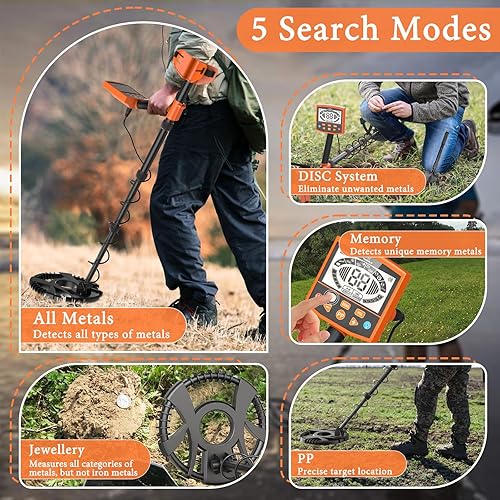 Metal detector, metal detector per adulti e bambini, profondità di rilevamento da 25,4 cm, bobina di ricerca impermeabile IP68 con chip DSP avanzato per rilevamento dell'oro, 5 modalità