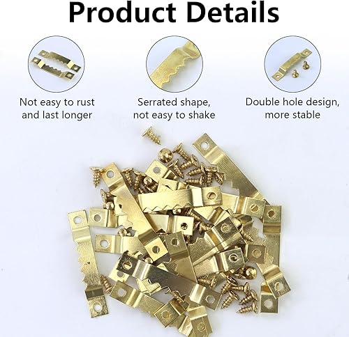 22 ganci per foto con 44 viti, con denti per sega, ganci per cornici in legno, ganci per cornici in legno, ganci dentellati per cornici