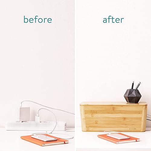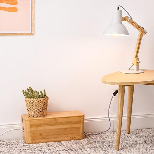 Navaris Scatola Nascondi Cavi Elettrici Bambù 39,4x16x16cm - Canalina Copriciabatta - Box Copri Fili Ciabatta Elettrica Sdoppiatore Presa Corrente XL