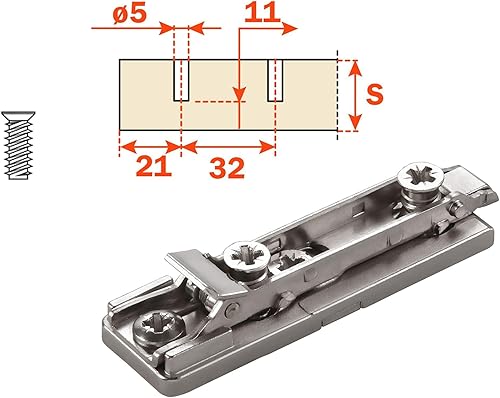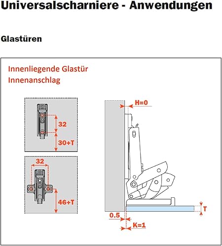 2 x Salice cerniere universali per porte in vetro o a specchio 110° incl. piastra di montaggio lineare altezza 3 mm con viti Euro, regolazione eccentrica