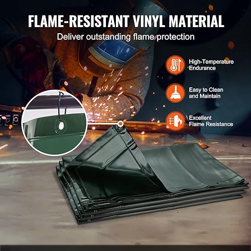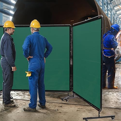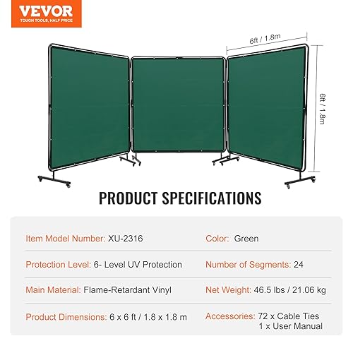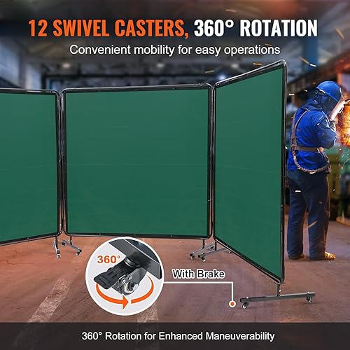 VEVOR Schermo per Saldatura con Telaio, Schermi per Tende per Saldatura a 3 Pannelli da 6' x 6', Schermo di Protezione per Saldatura in Vinile Ignifugo su 12 Ruote Girevoli (6 bloccabili)
