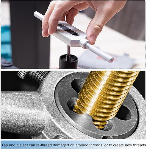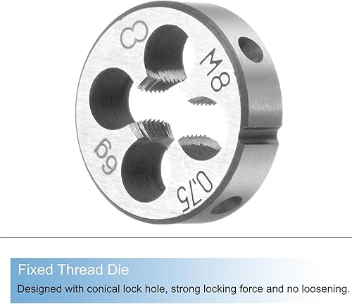 Set di 3pz Maschi e Filiera Metrici a Mano, M8 x 0.75 Maschi con Filettatura Conica/Tappo e Filiere Rotondo, Kit di Attrezzi Filettatura a Mano per Riparazione Filetti