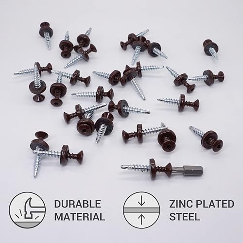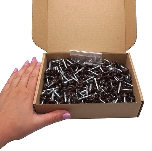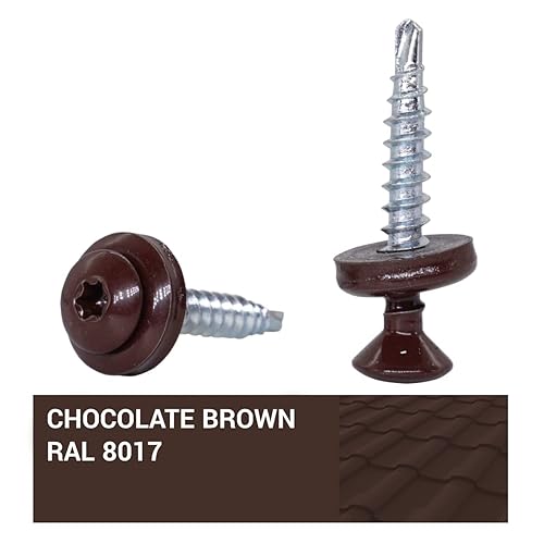 SKIR'CO Confezione da 250 viti per coperture in metallo, 4,8 x 35 mm verniciate autoperforanti con rondelle EPDM, vite Torx in lamiera (250, marrone cioccolato RAL 8017)