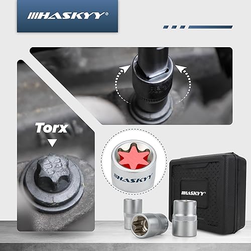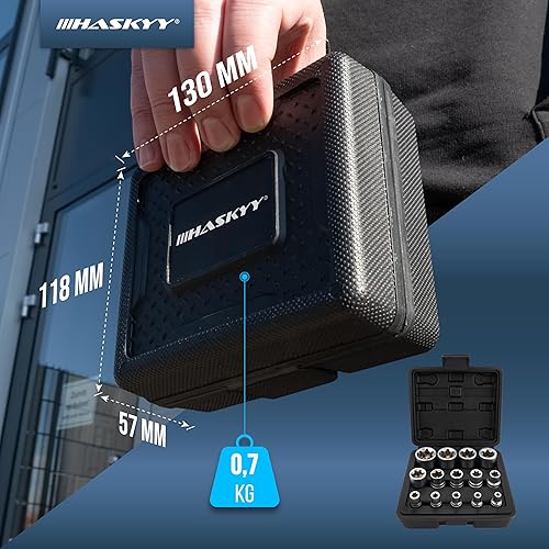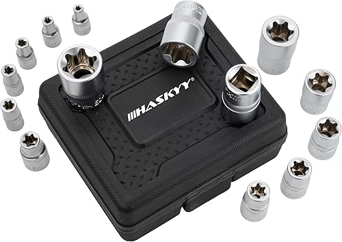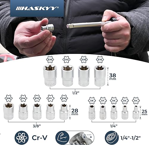 HASKYY Set di chiavi a bussola Torx con profilo E, 14 pezzi, E4-E24 1/4 3/8 1/2', inserti per chiavi a bussola quadrati interni