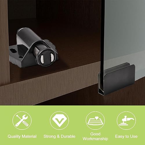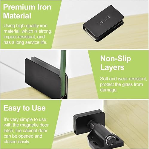 Chiusura magnetica per porta in vetro, set di 4 chiusure magnetiche a pressione per porta in vetro singola, con morsetto regolabile, adatte per porte in vetro oscillanti da 3-6 mm (nero)