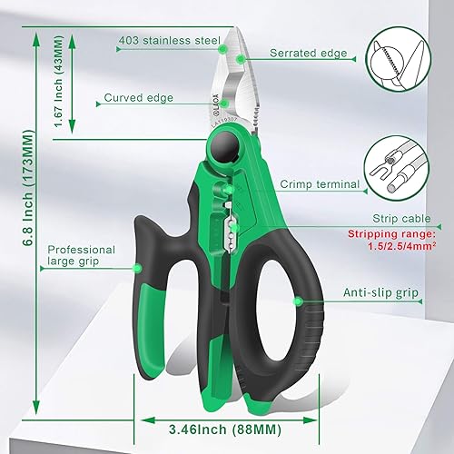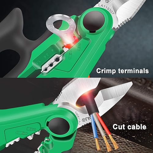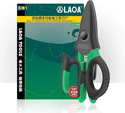 LAOA Forbici da elettricista con denti in acciaio inossidabile e guaina protettiva, forbici multifunzionali per elettricista per tagliare cavi, spelafili, terminali a crimpare Con 5 spazzole