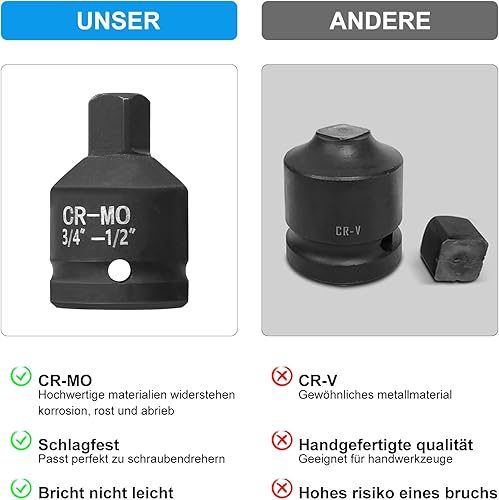 Adattatore da 3/4' F A 1/2' M Impact Socket, L'Acciaio Cr-Mo Riduttore Quadrato per Trapano Avvitatore A Percussione Adattatore Bussola per Chiave Dinamometrica E A Cricchetto