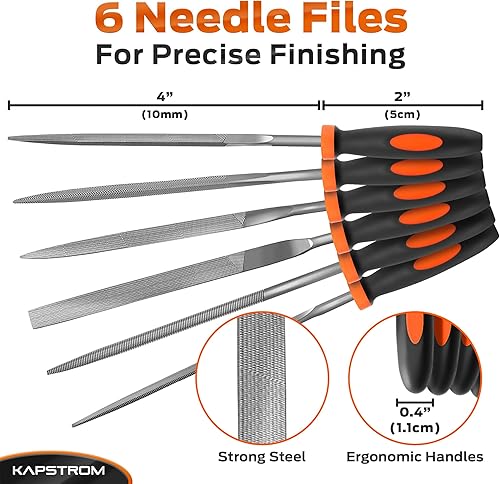 6-pc Needle File Set for Wood, Metal, Plastic & Jewelry, Includes Small Round, Half-Round, Square, Triangle, Flat & Flat Pointed Files, Handy Tools for Fine Finishing w/Ergonomic Handles