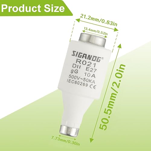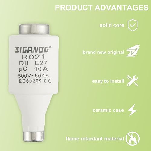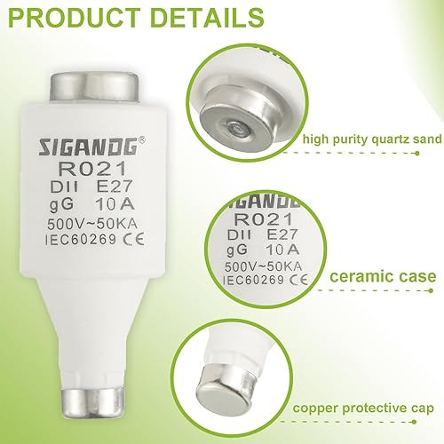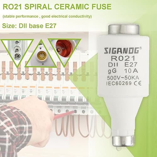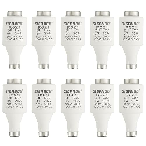 SIGANDG 20A DII E27 R021 Fusibili Ceramici a Spirale gG Diazed Fuse Links 500VAC per la Protezione di Cavi e Linee (Confezione da 10)