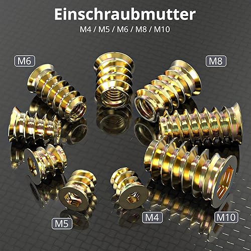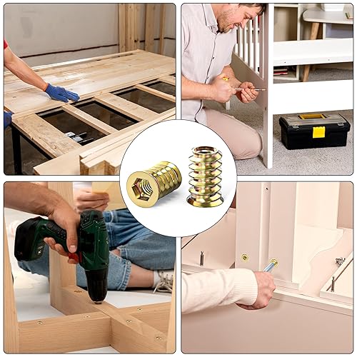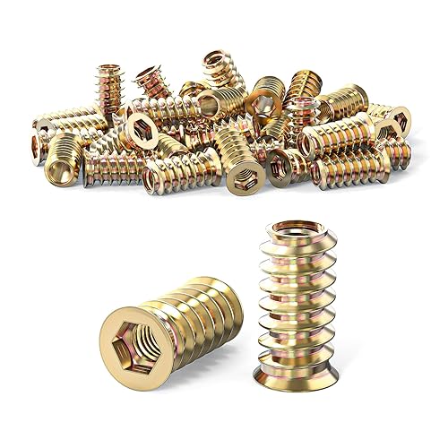 Dado a vite M8 x 20 mm, 20 inserti filettati in legno, manicotti a vite esagonali zincati, inserti filettati per mobili in legno