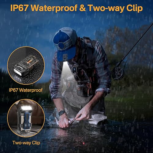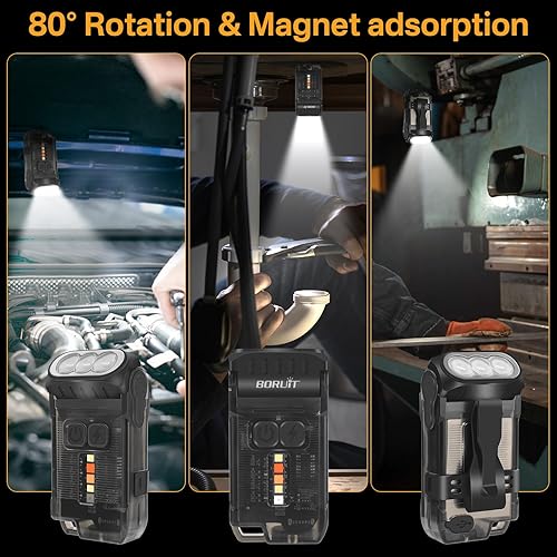 BORUIT V15 Torcia LED Potente Professionale 1200LM Mini Ricaricabile Portachiavi Torce con Magnete 80° Girevole, 10 Modalità USB IP67 Impermeabile Piccola Flashlight