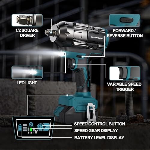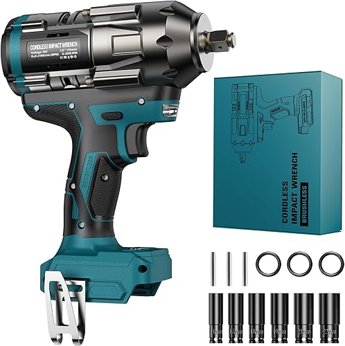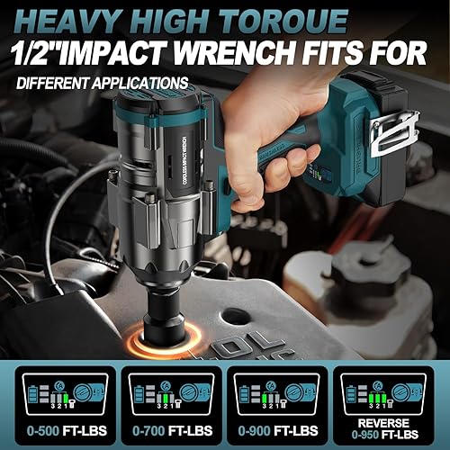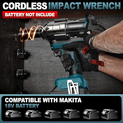 Avvitatore a Impulsi 1200 Nm, 1/2' Avvitatore ad Impulsi a Batteria Brushless, Compatibile con Batteria Ma-kita 18 V, 4 Velocità, Avvitatore a Massa Battente per Auto a Batteria, Senza Batteria