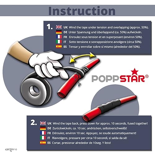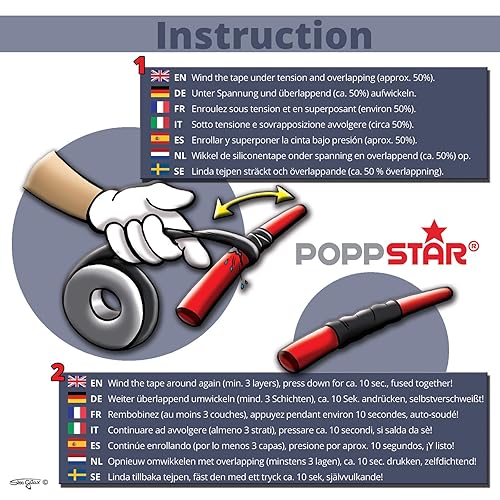 POPPSTAR - Nastro in silicone 1x 3m autoagglomerante auto-vulcanizzante per riparazione (acqua, aria) Nastro isolante e nastro di tenuta, largo 25 mm, giallo