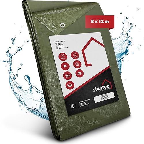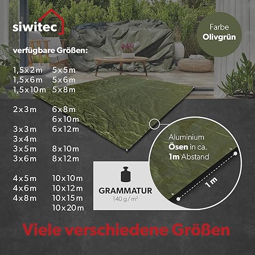 Telone di copertura 140 g/m², 6 x 8 m, in tessuto con occhielli e angoli rinforzati, impermeabile, in diverse misure, per mobili da giardino, legno e barche, telone in legno