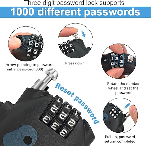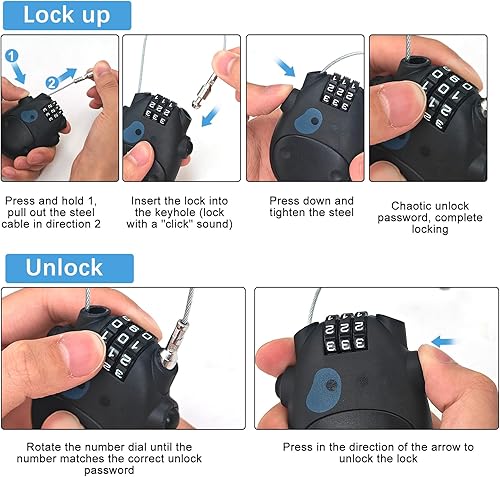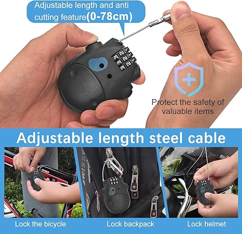 YOURKAY Lucchetto a Combinazione, Lucchetto a Filo Retrattile, Serrature con Combinazione per Casco da Moto Adatto per Auto Elettriche, Moto, Armadietti, Cassette Degli Attrezzi, Zaini (Nero)