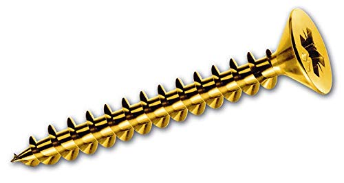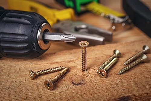 Viti in acciaio zincato giallo da 3,5 x 20 mm, per legno e truciolare, vite universale Pozi-Drive, testa svasata (confezione da 500 unità, 3,5 x 20 mm)