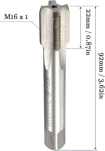 M16 x 1 Metrico Filettatura Fresatura Maschi x 1 Pezzo H2 Dritto Scanalatura Macchina Tocca per Filettatura Riparazione, [Acciaio Alta velocità, Non rivestito]