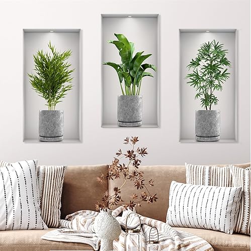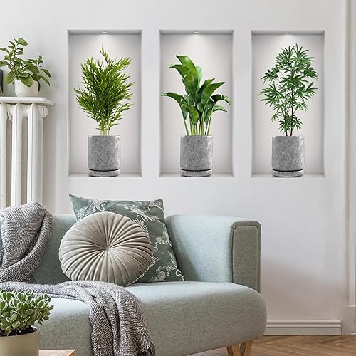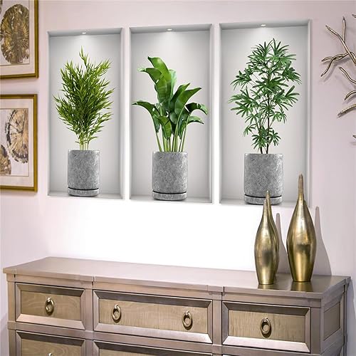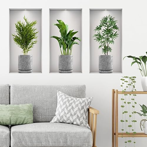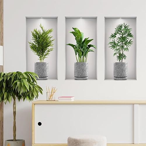 3 Pezzi 3D Vaso Adesivo da Parete Pianta Verde Adesivi Parete Cucina Adesivi Decorativi Adatto per Decorare Camere da Letto Soggiorni Alberghi e per Ricoprire Pareti Danneggiate