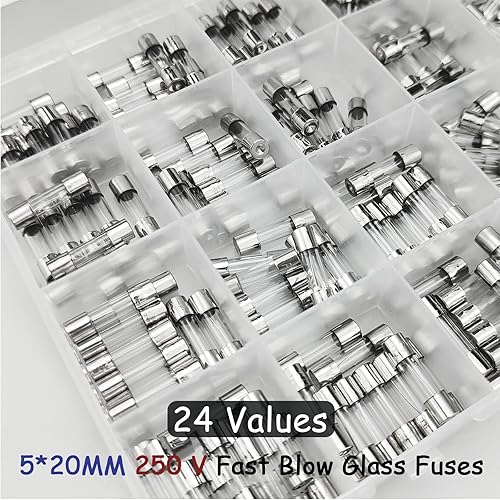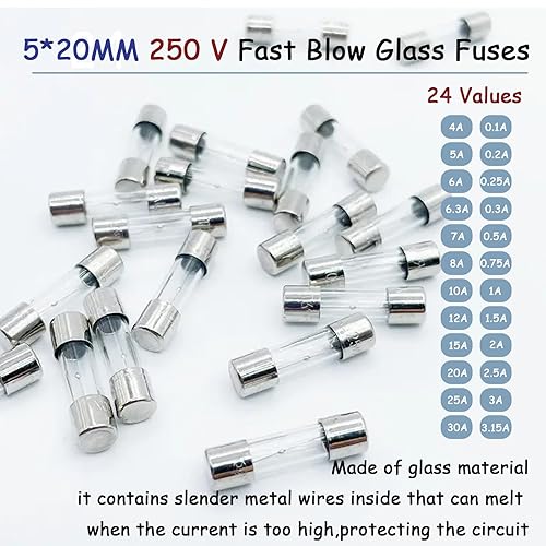 240 Pezzi 24 Valori Fusibili di Vetro 5x20mm, Kit Assortito Fast-Soffiare, Azione Veloce, 0.1-12A