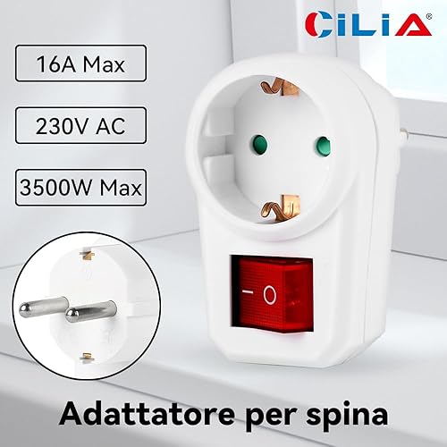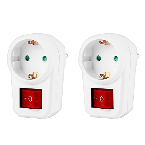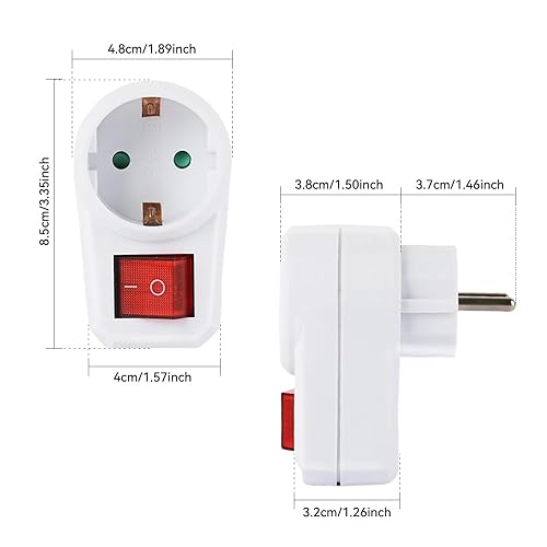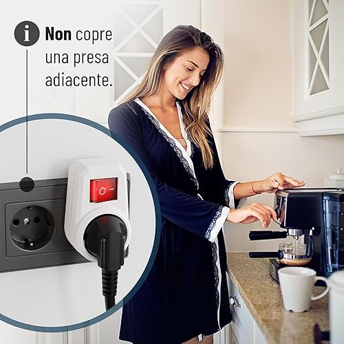 Presa Elettrica con Interruttore Schuko 2 Poli Bianca – Tipo F, Risparmio Energetico, Salvaspazio con Connettore Intermedio e Morsetti di Terra (2)