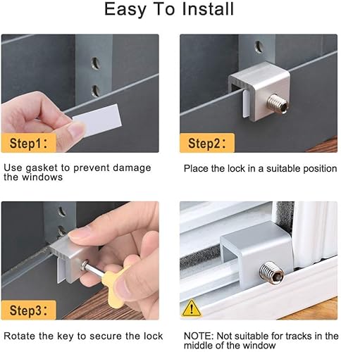 6 Pack Serratura di sicurezza per finestra scorrevole regolabile, telaio della porta con serratura in lega di alluminio, con serratura di sicurezza e chiavi