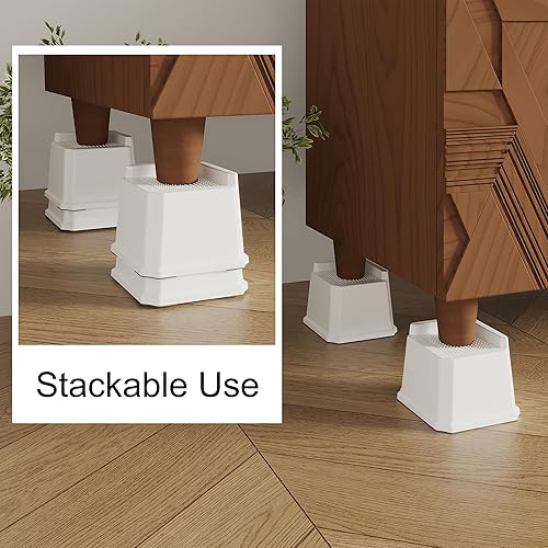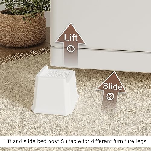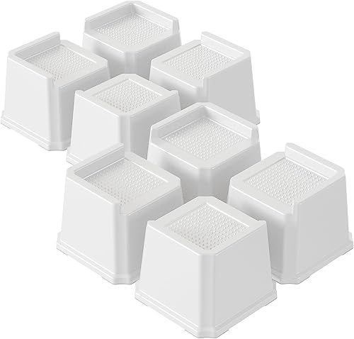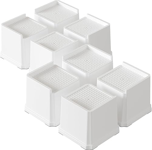 Rialzi per letto da 10,2 cm, resistenti, confezione da 4 pezzi, a forma di L, 0,7 kg, alzata per divano e tavolo, bianco