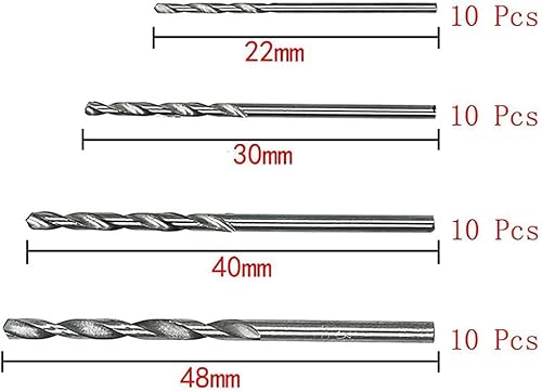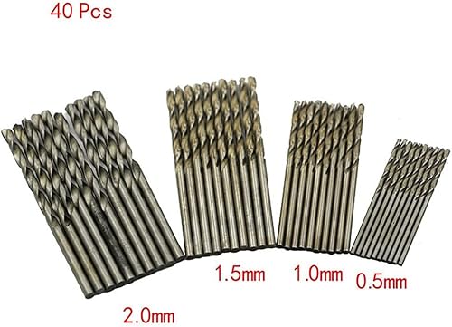 40 Pezzi 0.5Mm-2.0Mm Mini Set di Punte per Trapano a Codolo Dritto Minuscole Mini Punte per Trapano a Piena Terra Punta Elicoidale HSS per Dil