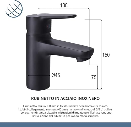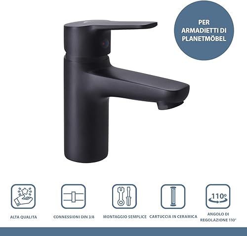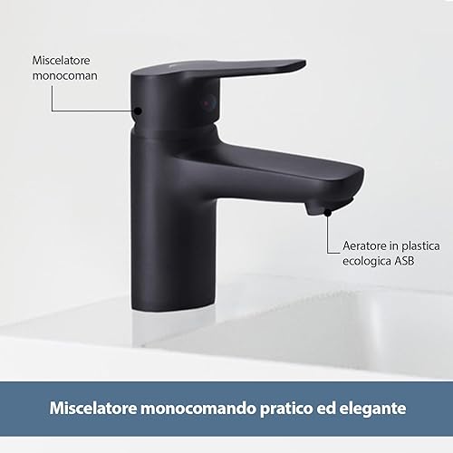 Rubinetto nero, rubinetto da bagno con miscelatore monocomando per lavabo, rubinetto moderno