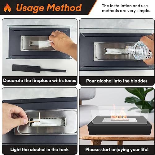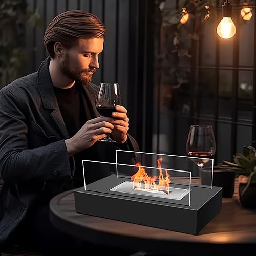 Camino da tavolo a gel ed etanolo moderno ed elegante, caminetto a bioetanolo da tavolo, 35 x 18 x 17 cm