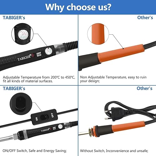 Set saldatore 14 in 1 con temperatura regolabile 200 – 450 °C, interruttore on/off, 60 W/220 V, set di saldatura con 5 punte di saldatura, pompa dissaldante, stagno di saldatura, pinzetta, stazione di
