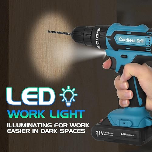 Avvitatore a batteria 21V, Trapano avvitatore elettrico con 2 2.0Ah Batteries, 28Nm Trapano a Percussione, 25+3 Coppie, LED Luce, 2 Velocità per il fai da te, in Casa e Giardino