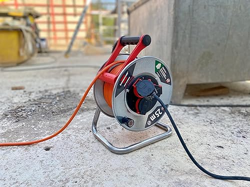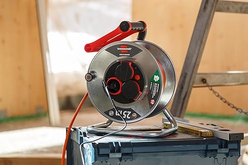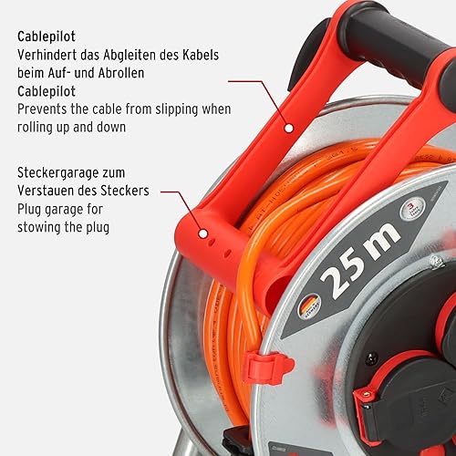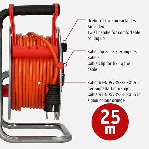 Brennenstuhl Garant S V2 IP44 1198370500 - Avvolgicavo per esterni, 25 m, colore: arancione segnaletico, lamiera d'acciaio, per uso esterno a breve termine, 25 m