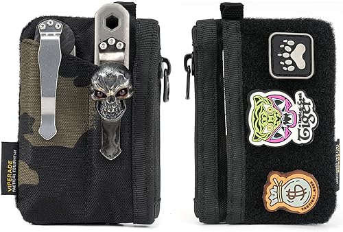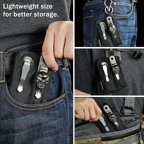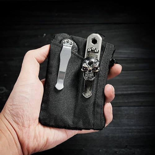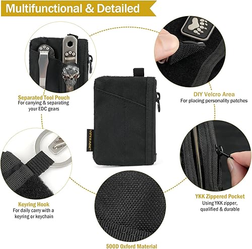 VE17 Mini borsa tascabile EDC, piccola borsa organizer EDC con 4 tasche, borsa per attrezzi EDC con area di chiusura in strappo, borsa aggiuntiva per zaino piccolo - Nero