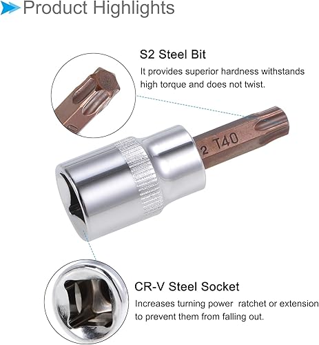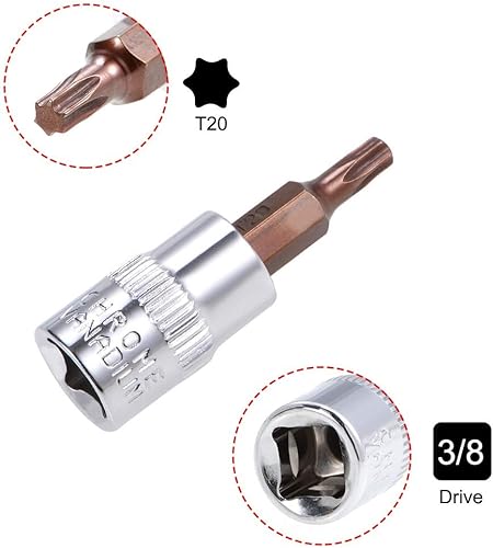 TOP-VIGOR Chiave a bussola Torx, attacco da 3/8' x T45 CR-V, punte in acciaio S2 di alta qualità, punta Torx con lunghezza 48 mm per chiave dinamometrica, chiave a cricchetto, trapano a percussione,