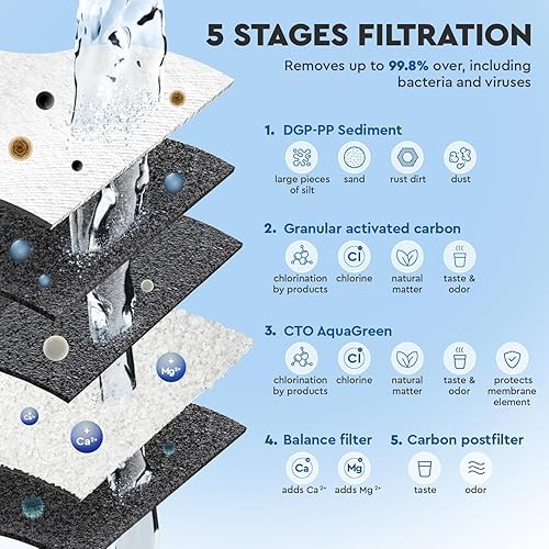 Filtro ad osmosi inversa - Set di ricambi 6 fasi con pompa integrata - Acqua potabile domestica con mineralizzatore di calcio - Installazione sotto lavello