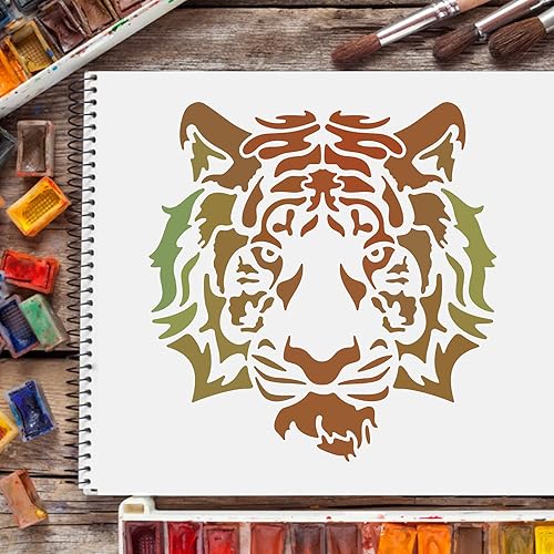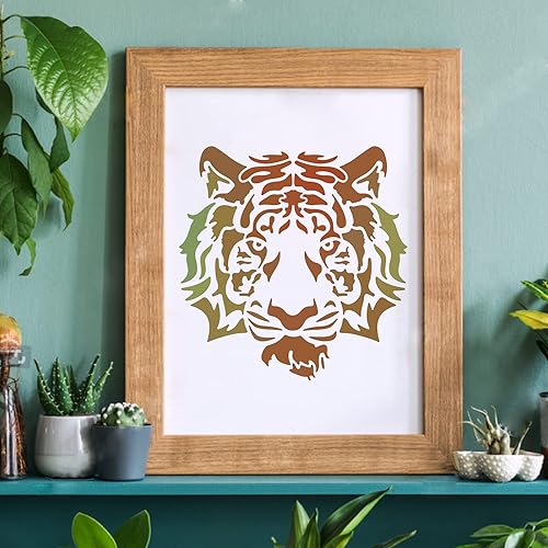 FINGERINSPIRE Tigre Stencil Stencil Modello Tigre 30x30cm Plastica Testa di Tigre Disegno Stencil Quadrato Testa di Tigre Stencil Riutilizzabili per Dipingere su Legno, Pavimento, Parete e Tessuto