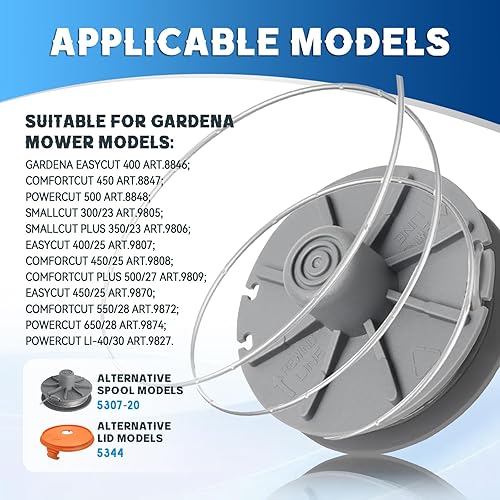 CHIHOLEN Bobine Filo Tagliabordi compatibile con 5307-20, bobina di filo di ricambio per Gardena Art 8846, 8847,8848, 9805, 9806, 9807, 9808, 9809, 9827, 9870,9872,9874, Ø1,65mm 6,1m(4 bobine+1 tappo)