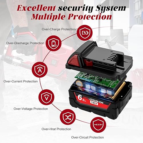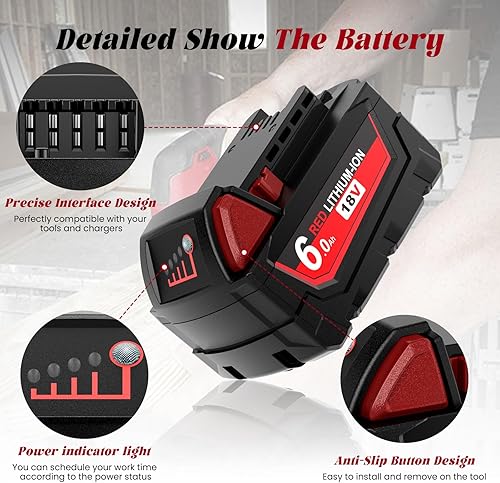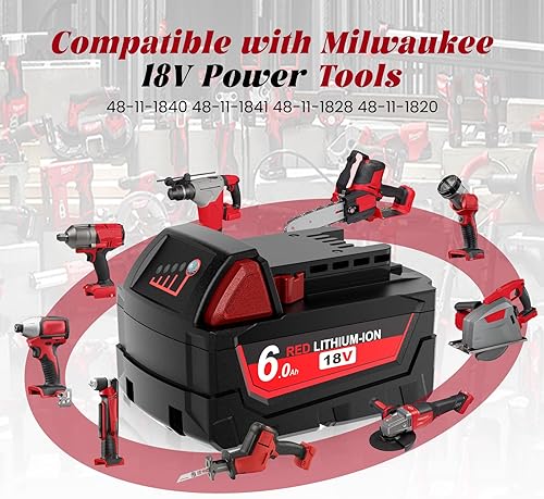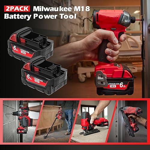 2 Pezzi 6,0Ah/6000mAh 18V Sostituzione Batteria per Milwaukee M18 Batteria Compatibile con Milwaukee M18 M18B 48-11-1840 48-11-1828 48-11-1820 48-11-1815 48-11-1850