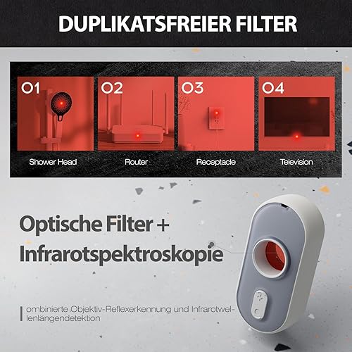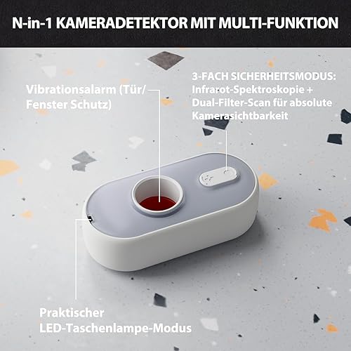 Rilevatore di Telecamere Nascoste 3 in 1- Rivelatori di Telecamere Anti-Spia con Allarme a Vibrazione e Torcia LED Detecțeur Telecamere Nascoste per Airbnb, Hotel, Bagno, Casa, Ufficio