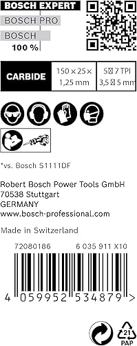 Bosch 1x Lame per Seghe Universali Expert ‘Wood with Metal Demolition’ S 1167 XHM (225 x 25 mm, Accessorio Sega Universale), Carburo, Non Applicabile, 225 mm/9'