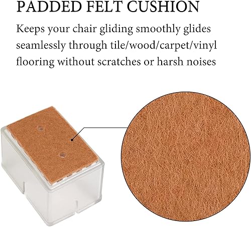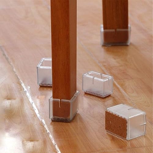 Set di 24 protezioni per piedi per sedia in silicone, trasparenti, con piedini rettangolari, tampone per sedie e mobili con cuscinetti in feltro per pavimenti in legno massiccio, 21 x 42 mm