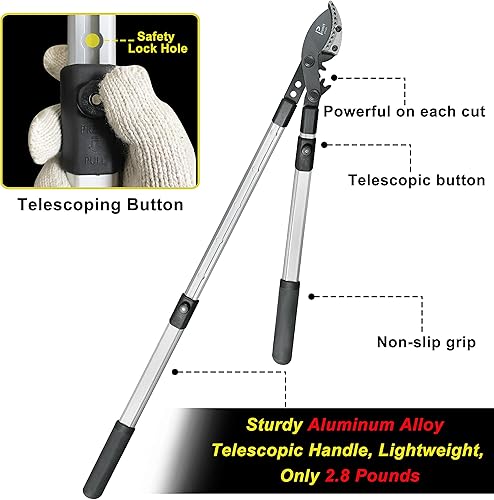 Prunrt Troncarami bypass estensibili da 66-104 cm, resistenti, potatori telescopici con azione composta, potatori a manico lungo con doppia leva, capacità di taglio da 5 cm