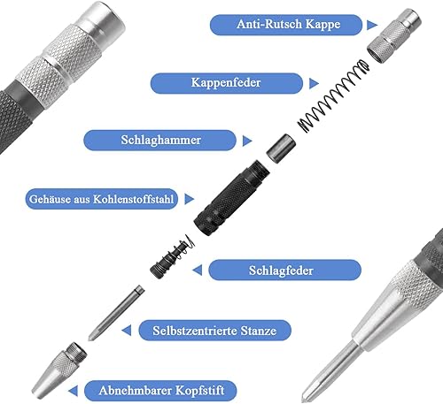 Mesee Semi autobloccanti, foratura automatica, 6,1 pollici, grani molleggiati, grana automatica, foro centrale caricato a molla, perforatore per finestre per metallo, legno, vetro e lamiere di acciaio