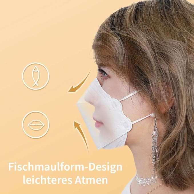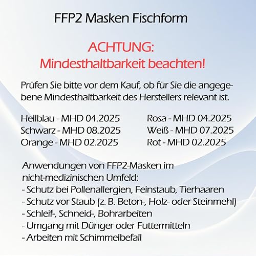 TubeRoo FFP2 - Maschera rosa chiaro, 10 pezzi, a forma di pesce, spedizione dalla Germania, morbidi passanti per le orecchie, respiratore, paradenti