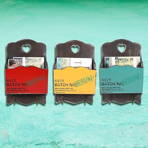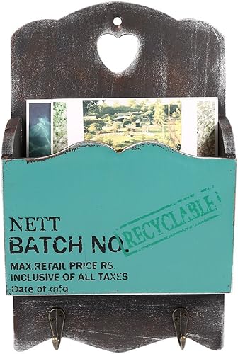 Vintage Cassetta Postale/Mailbox di Legno a Parete, Scatola d’Immagazzinaggio con Piloni Portachiavi per Corridoio Portone Cestello Portaoggetti (Colore : Bluish Green)