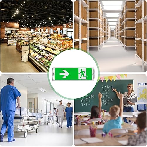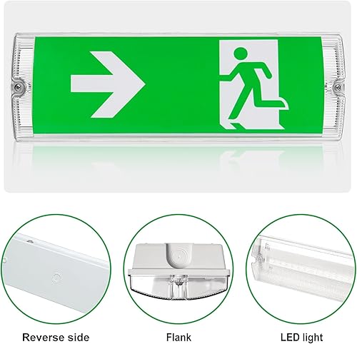 Lampada di emergenza a LED, luce di emergenza, luce fissa, segnale di emergenza, con batteria di emergenza 3 h, 4 spiktogrammi di uscita di emergenza, 100 lampadine, impermeabile, per montaggio