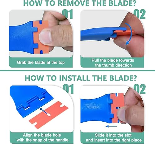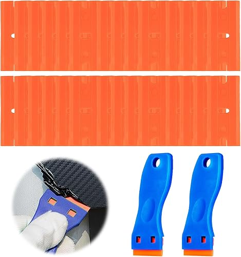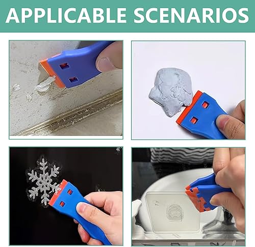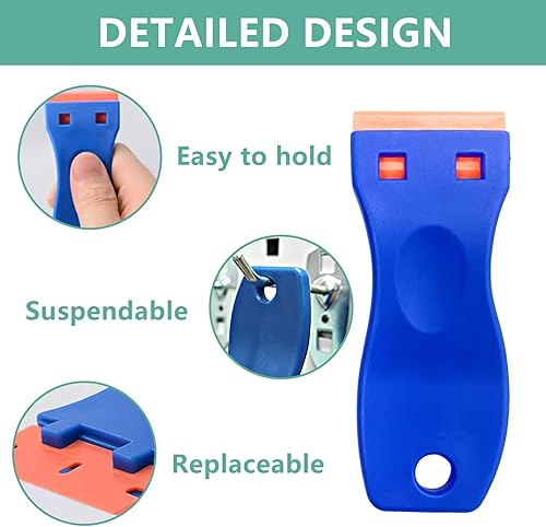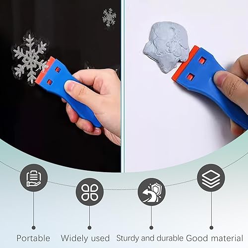 2 Pezzi Raschietti in Plastica con 30 Lame in Raschietto Plastica, Raschietto Vetroceramica Rimozione della Colla in Vinile per Finestre e Raschietti in Vetroceramica Auto (Blu)